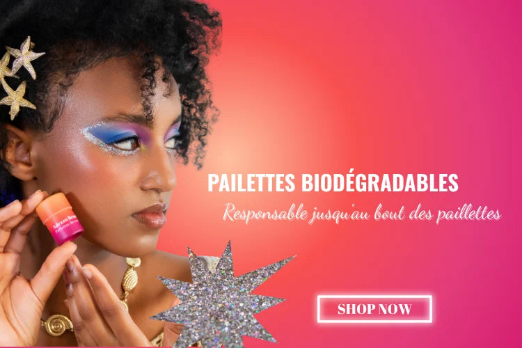 Des paillettes plein les yeux et pas seulement… Pour nous, la paillette est un accessoire beauté, un véritable atout pour peaufiner son style. Paillettes pour les cheveux, paillettes pour le corps, paillettes biodégradables visage, en route pour les paillettes naturelles et le maquillage festival personnalisé !
