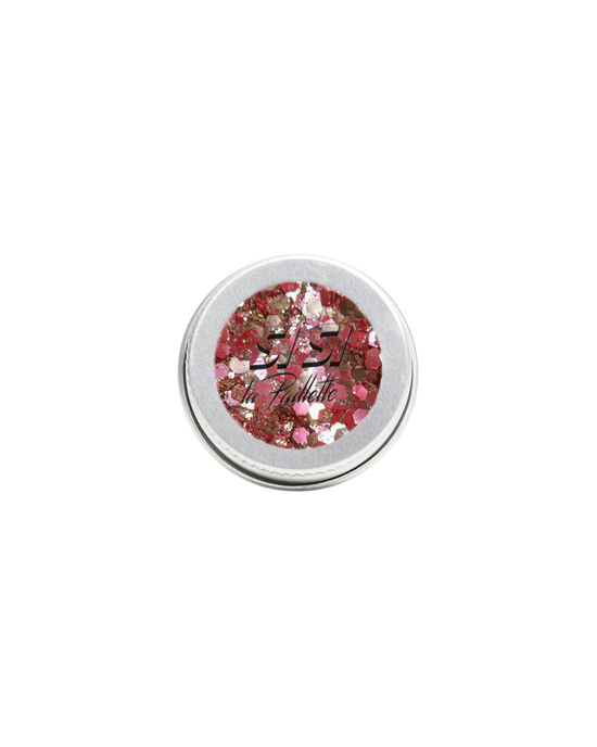 En paillettes visage : Sublimez votre visage avec ce mélange "Végas Bébé" aux reflets or rose et rouge. Appliquez ces paillettes délicates en petites touches pour un style glamour chic.