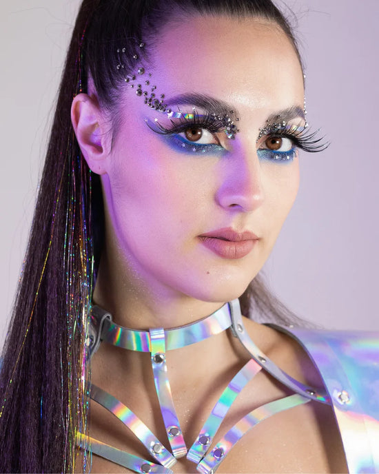 Bleu layette, rose romantique, jaune pop rétro, noir pailleté, chaque maquillage devient une création unique selon l’événement auquel il se destine.