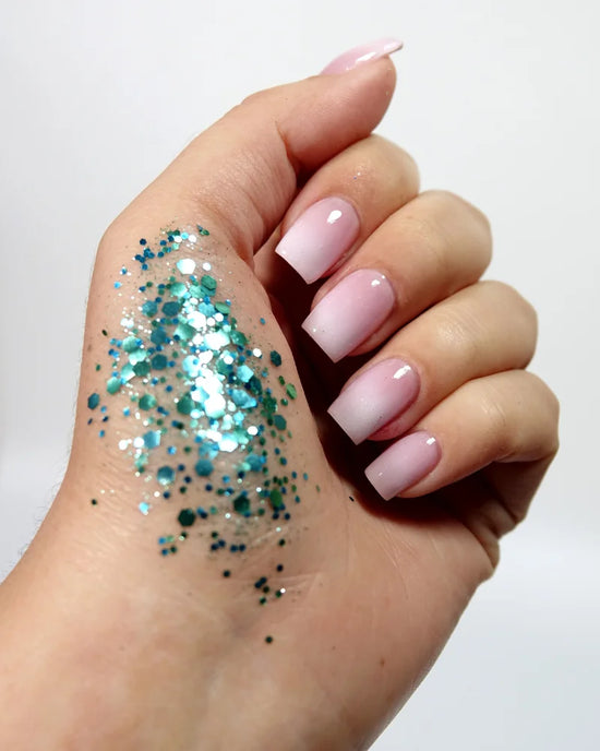 - En paillettes corps : appliquez le baume karité et soufflez-les pour un résultat scintillant ;